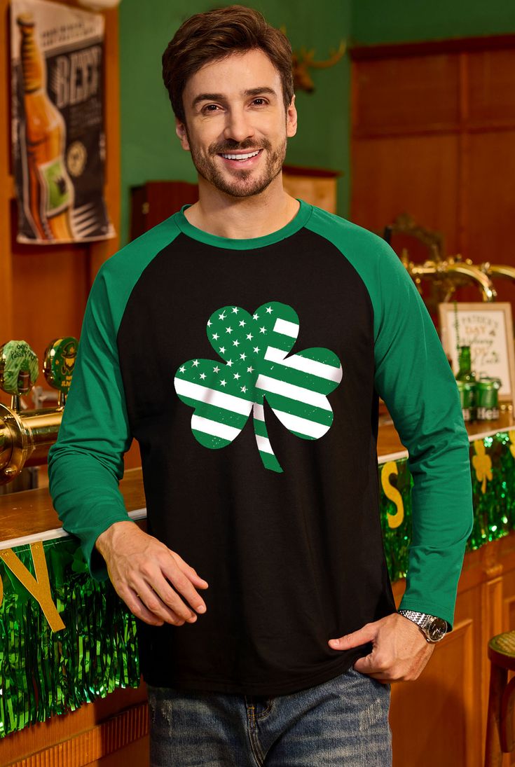 Men's Funny St. Patrick's Day Sláinte Shamrock Print Casual Long-Sleeve Top