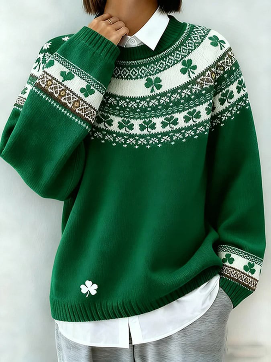 Women's St. Patrick's Day Shamrock Print Sweater