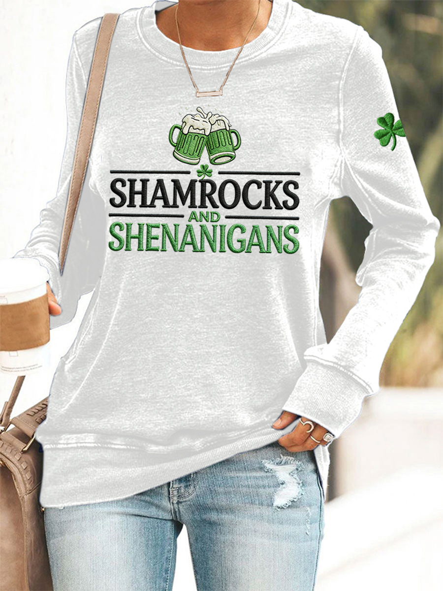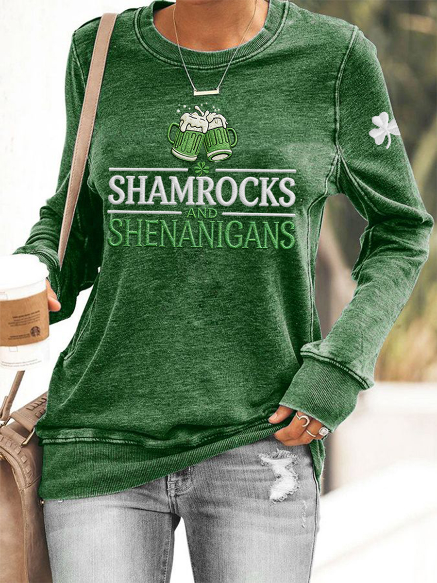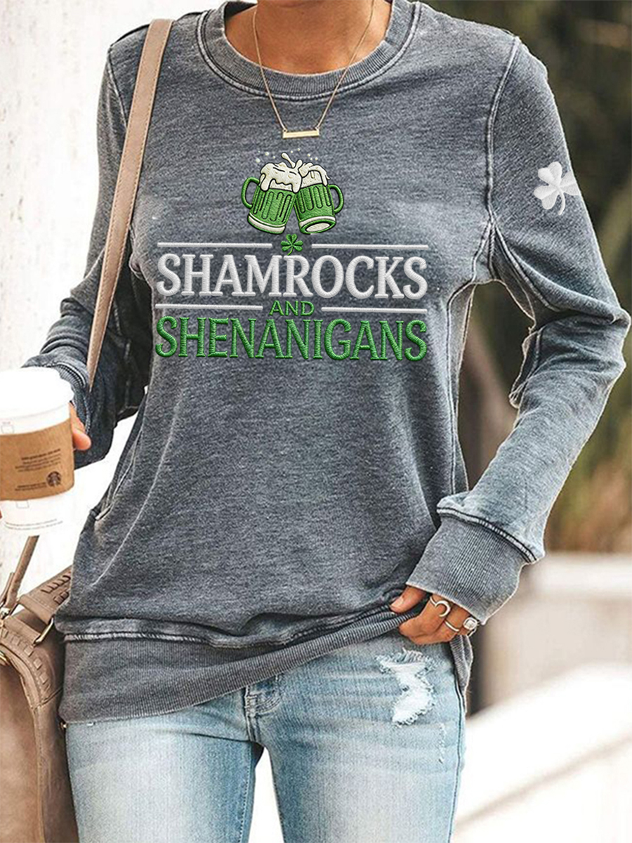Women's Funny St. Patrick's Day Shamrocks And Shenanigans Print Casual Sweatshirt