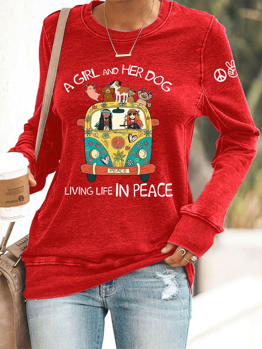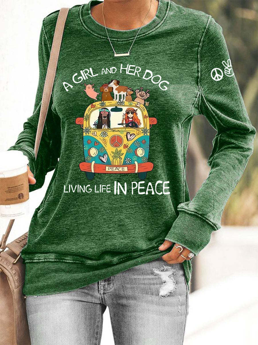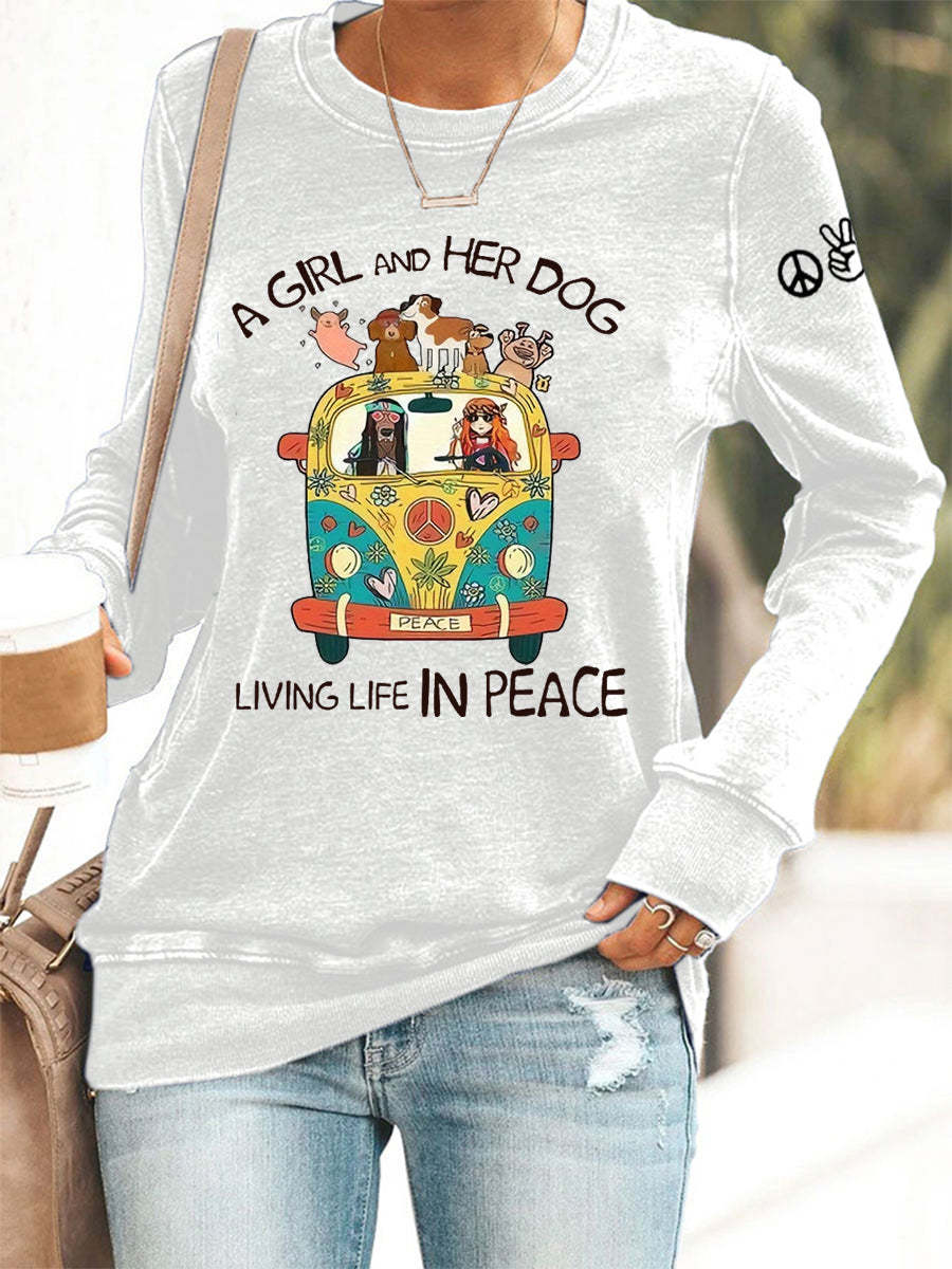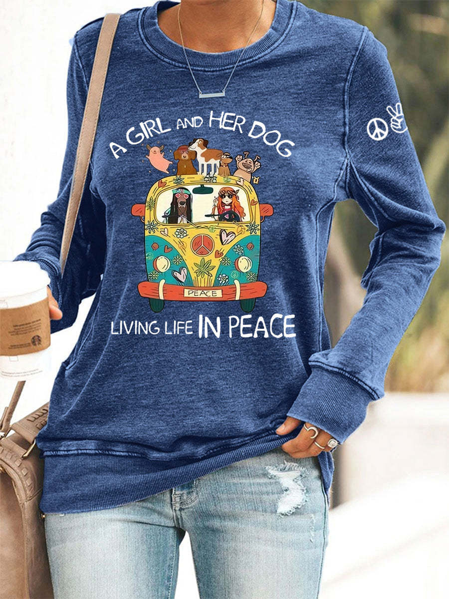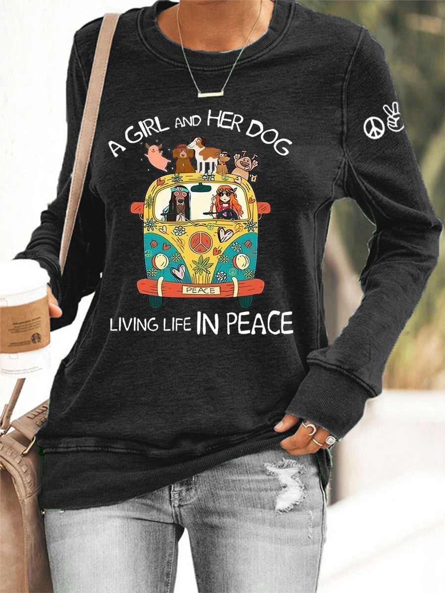 Women's A Girl And Her Dog Living Life In Peace Print Casual Sweatshirt