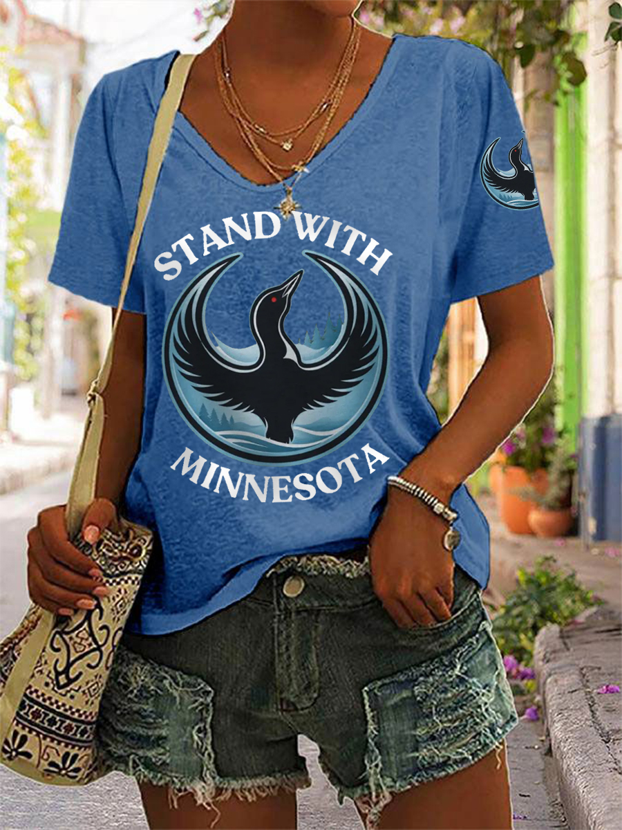Women's Stand With Minnesota Abolish Ice V-Neck Tee