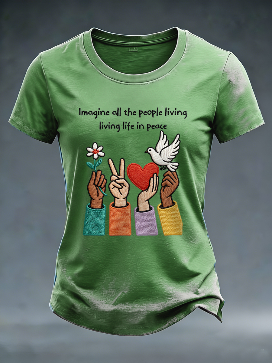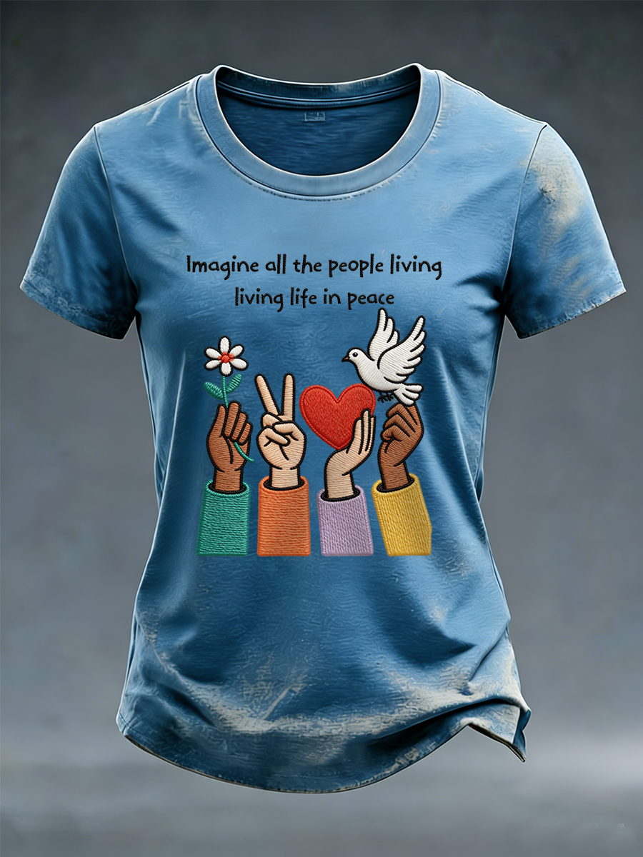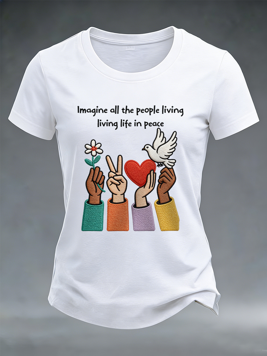 Women's Imagine All The People Living Life In Peace Print Tee