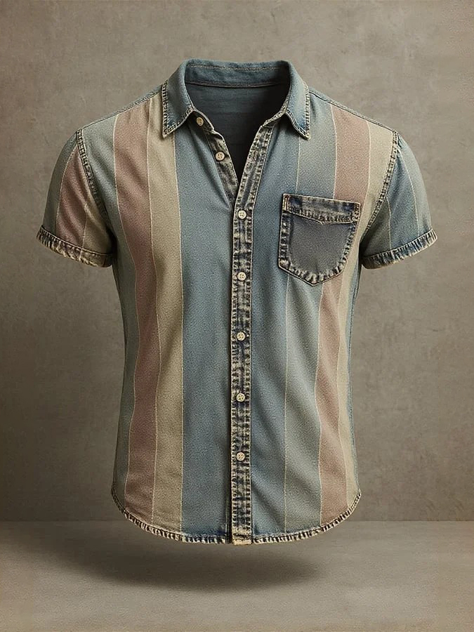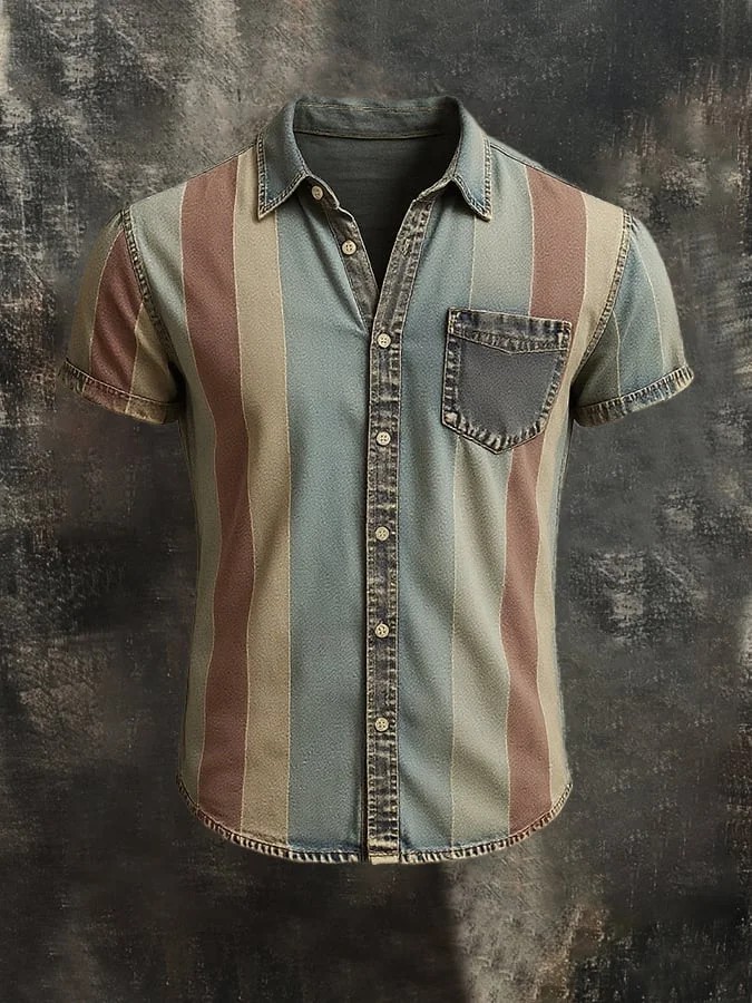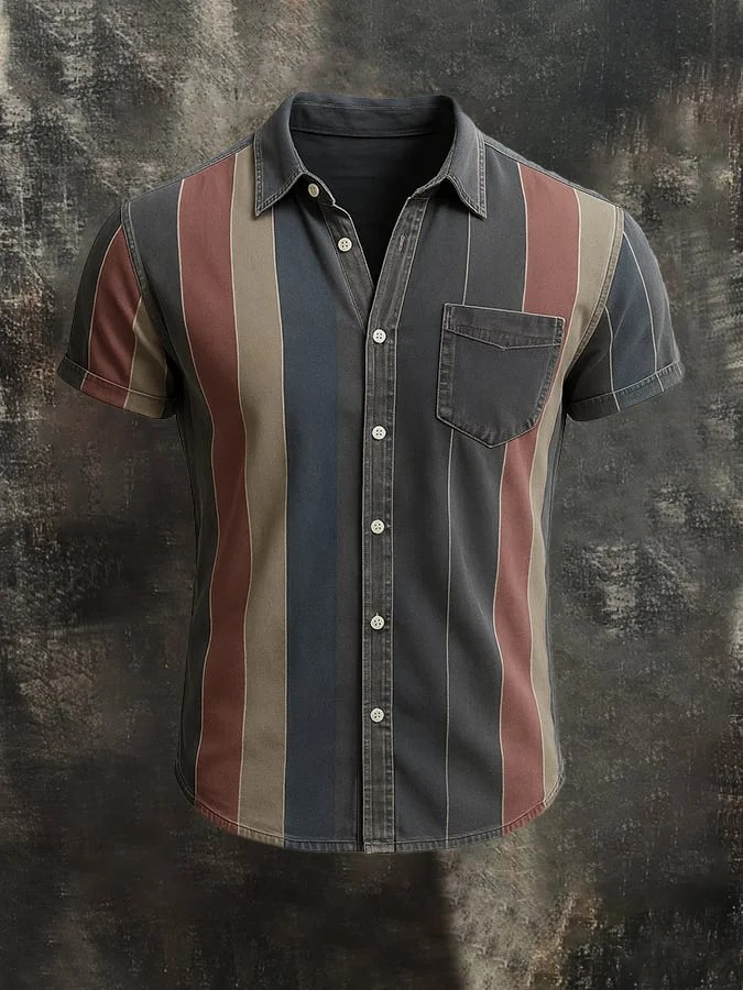 Men's Casual Retro Stripe Graphic Print Short Sleeve Shirt