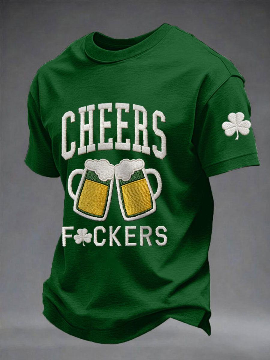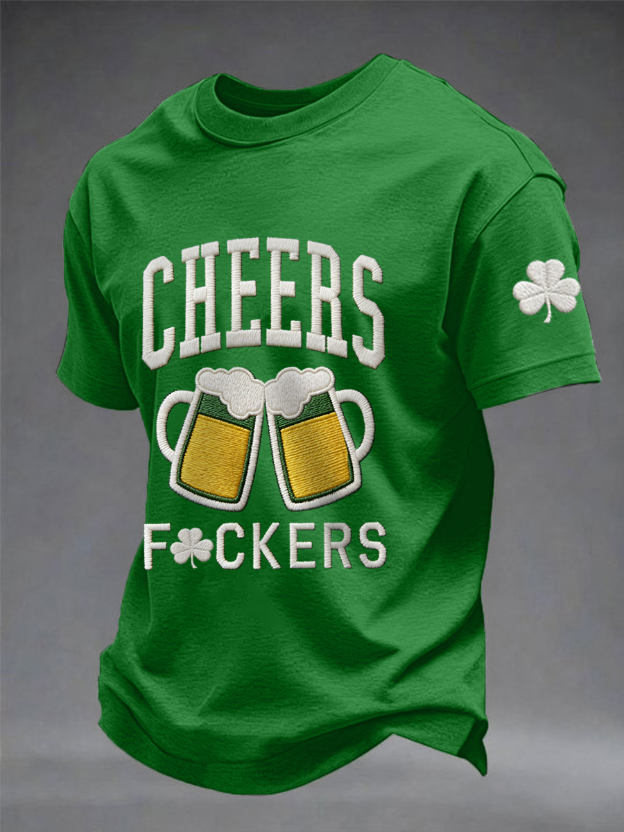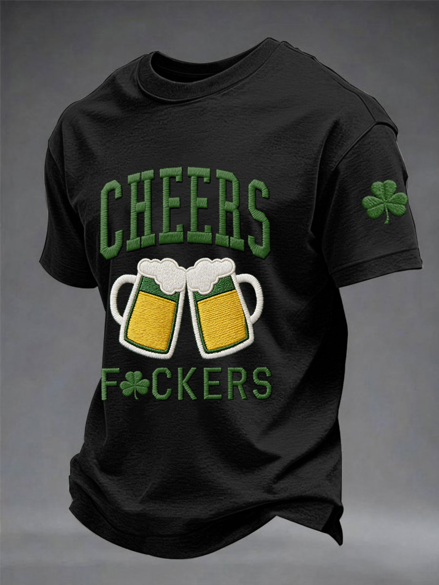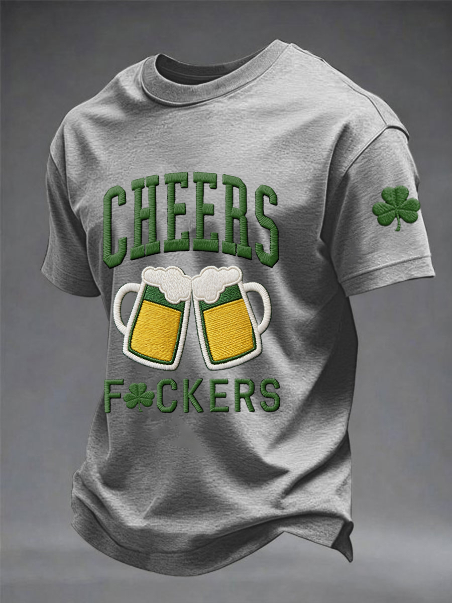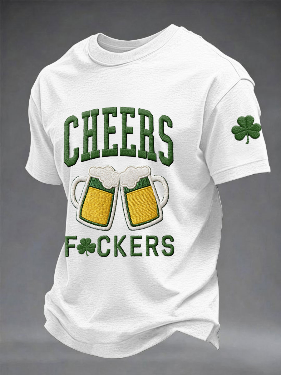 Men's Funny St. Patrick's Day Cheers F*ckers Shamrock Print Casual Tee