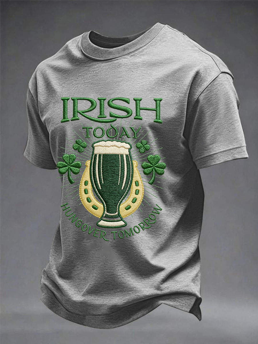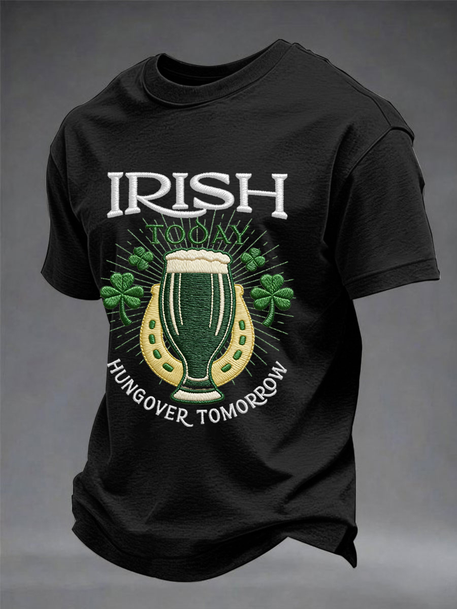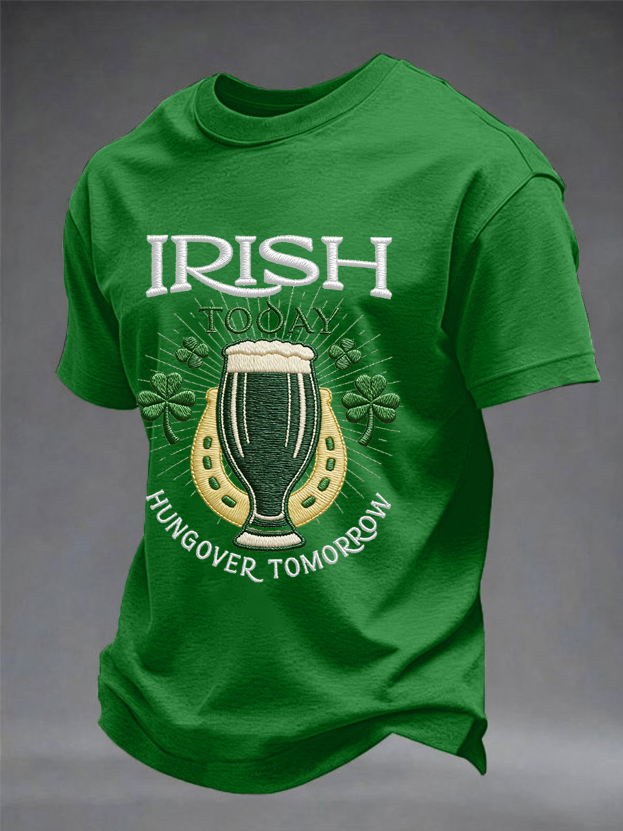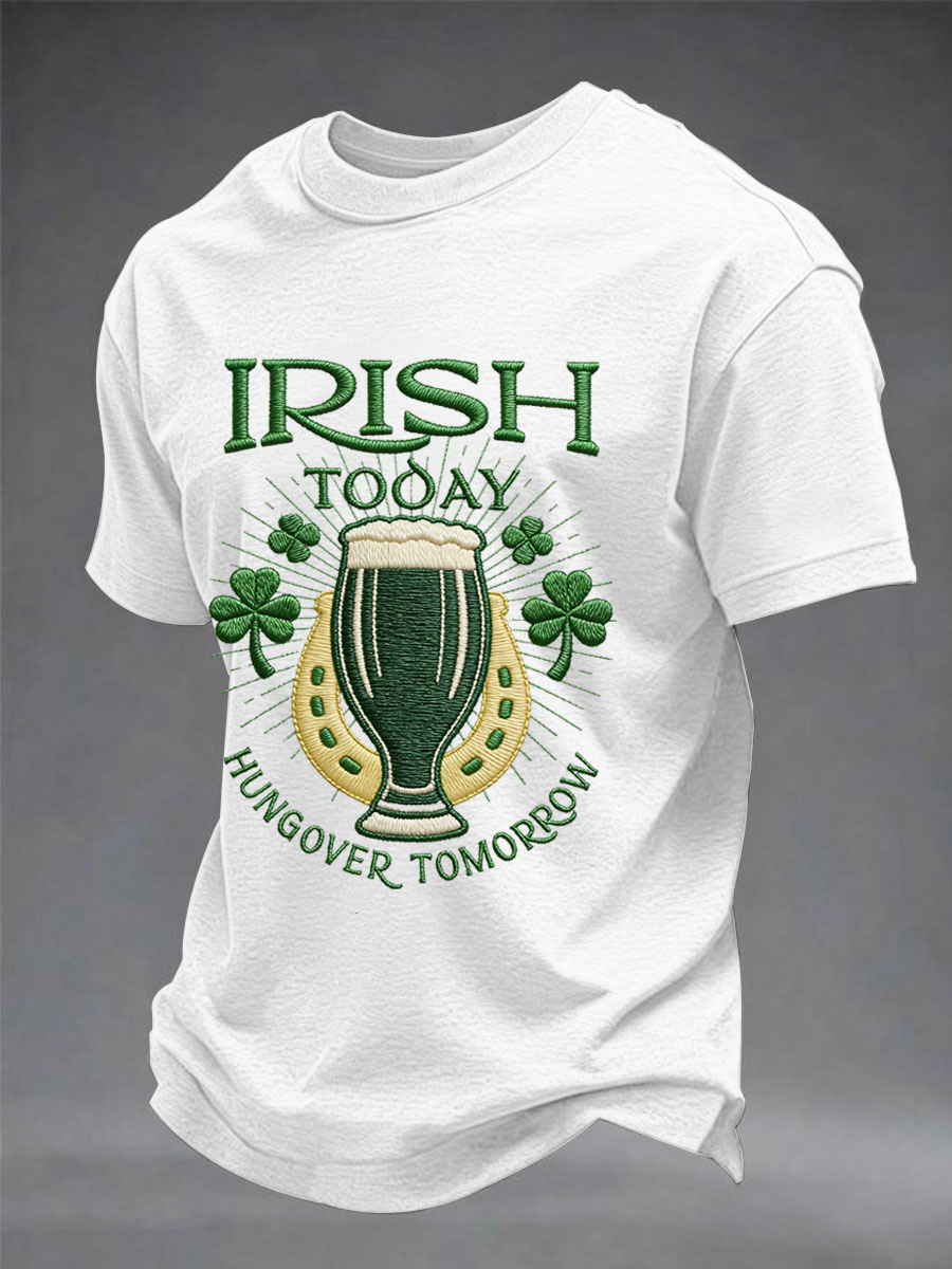 Men's Funny St. Patrick's Day Irish Today Hungover Tomorrow Print Casual Tee