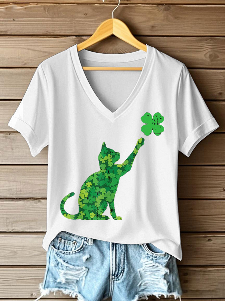 Women's St. Patrick's Day Shamrock Print V-neck short-sleeve T-shirt