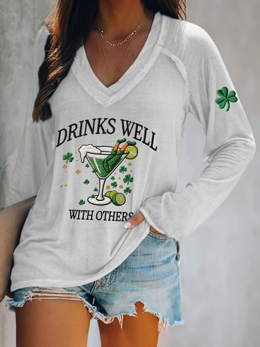 Women's St. Patrick's Day Drinks Well With Others Print V-Neck T-Shirt